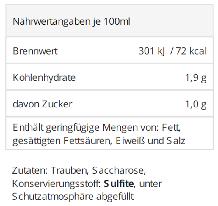 Im Abgang zeigt er sich sauber, ausgewogen und dezent fruchtig mit einem Hauch von Nussigkeit.